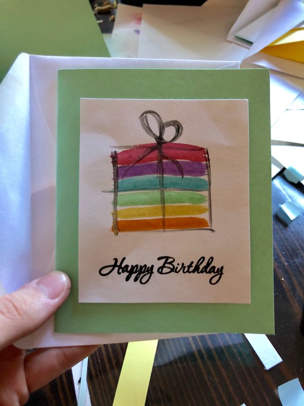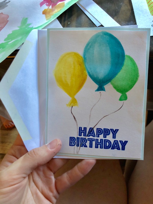 I made these three while painting with my kids. I even used the kids’ painting sets. Super simple and easy. I do have a set of birthday stamps which come in super handy for making cards. And since I send a card to everyone in our immediate families each year – I figure I have enough paper to last me…about the next 10 years. 👍🏻