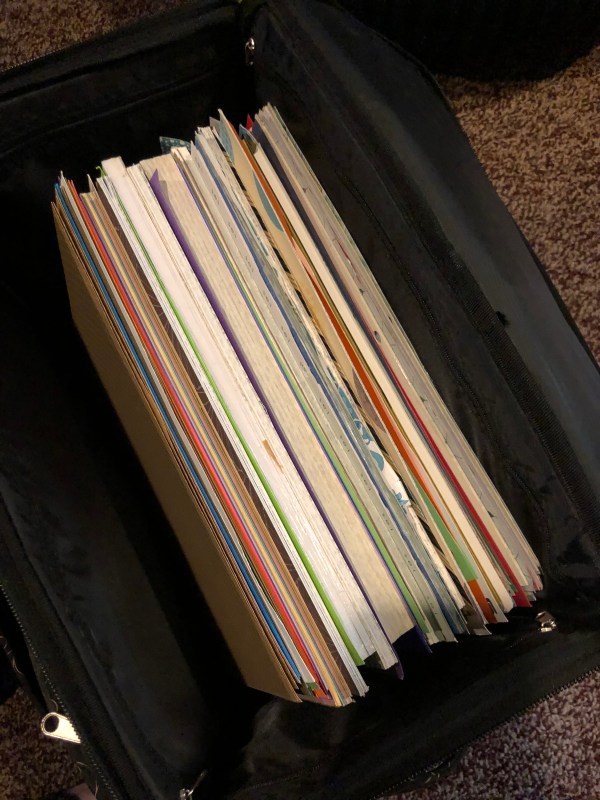 And now I’ve initiated a “use it up” challenge. No buying cards or notebooks or ANY PAPER [other than maybe coloring books for the kids] until I’ve used up the rest of my stash, which I reduced to fit into this one case.