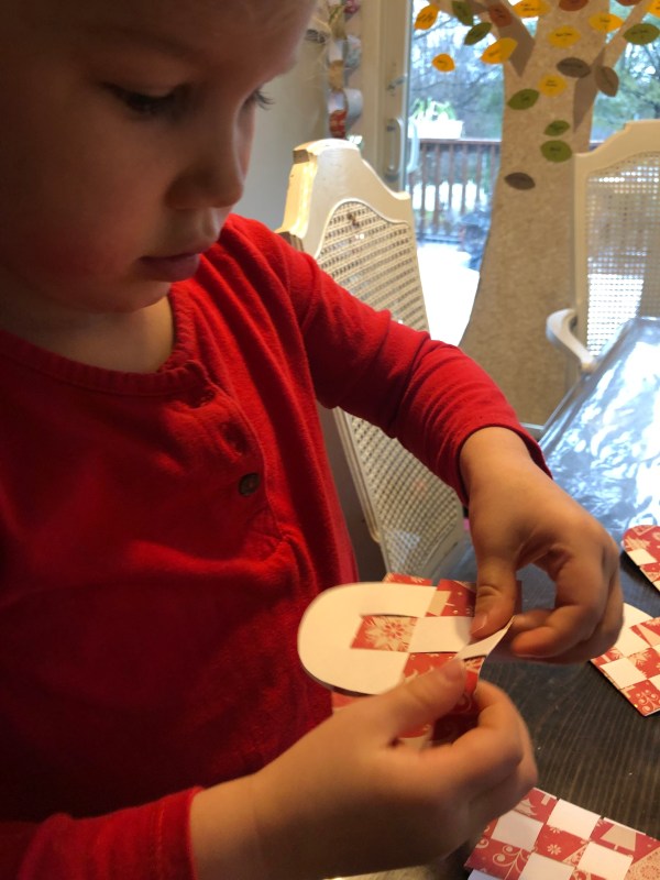 Today, the kids and I made Danish woven heart ornaments to send to their cousins and friends with their Christmas cards.