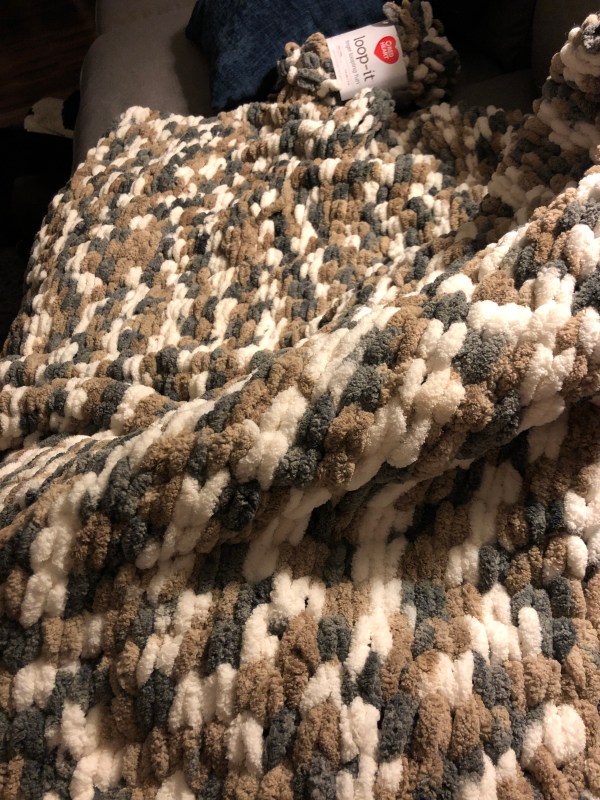 New skill this year is knitting. In January, I knitted three blankets as gifts for family and friends, but I cheated and did “finger knitting” using Loop-It yarn.