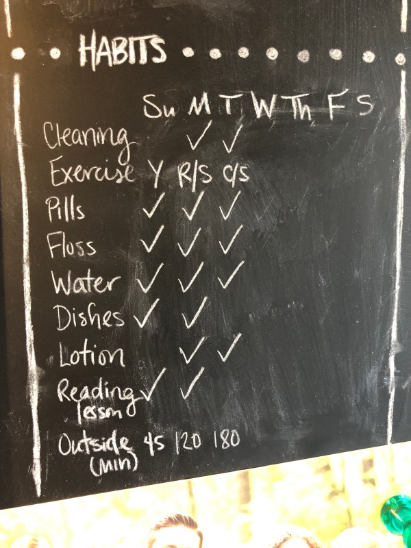 For my family, I want to spend more time outside. We didn’t do great during the cold months, but now that it’s warmer we’ve been spending lots of time outdoors. In order to make it a priority, I’ve added “outside” time to my daily habits list on my chalkboard planner. On rainy days, it’s my first inclination to keep them indoors, but I have been reminding myself that it’s not harmful and sending them out with raincoats and boots. It’s a muddy mess, but they are still getting time outside.
