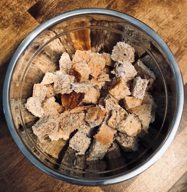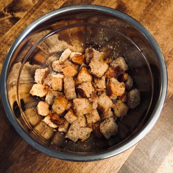 I originally got the idea from back in the day when I worked for Panera. Did you know that they make their own croutons out of their freshly baked bread? Well, at least that’s how they did it ten years ago…