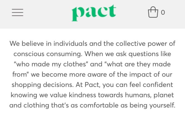 The company is ethical and eco-conscious. If I have no choice but to buy new, then I want to purchase clothing that is made ethically and sustainably – meaning a company that prioritizes taking care of EVERY PERSON in its supply chain and making a concerted effort to protect the environment. The clothing industry is taxing on the environment no matter how it is done [but, obviously, so is just plain living], but some companies are trying to do a better job. The heart of the company is what I care about most.