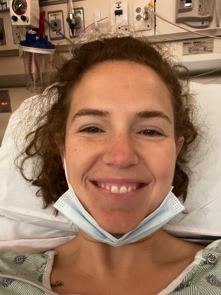 After the surgery [I took this picture to show my husband that I was ok because he couldn’t see me right away after the procedure]