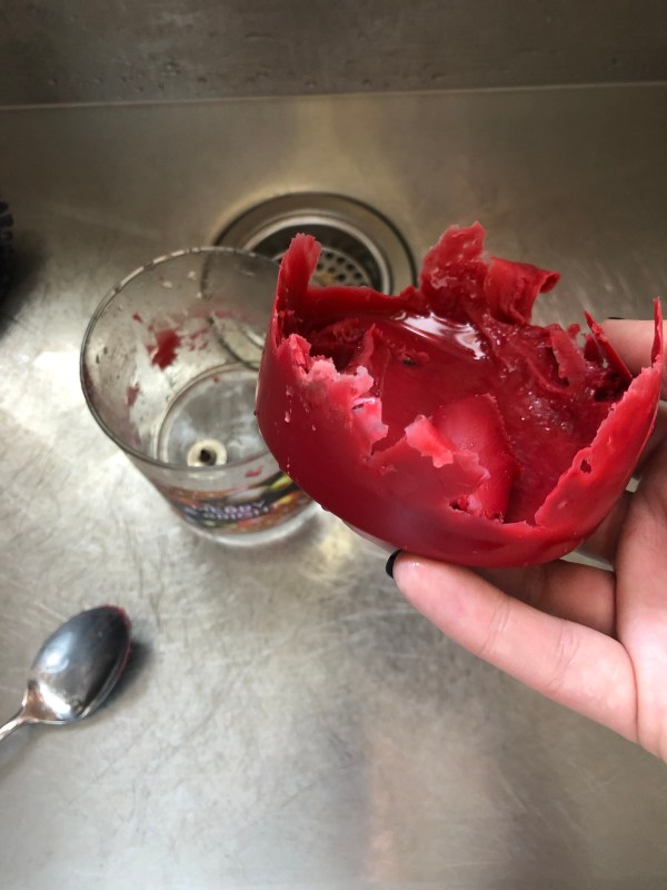 Folks, this is apparently not the best way to clean your candle jars. I was just trying to use my brain when I should have been asking Google. Apparently, all you need to do is stick the candle in the freezer and the wax will magically separate from the container. [Whaaa?] I cannot verify this, of course, but it sounds much easier than my scraping method.