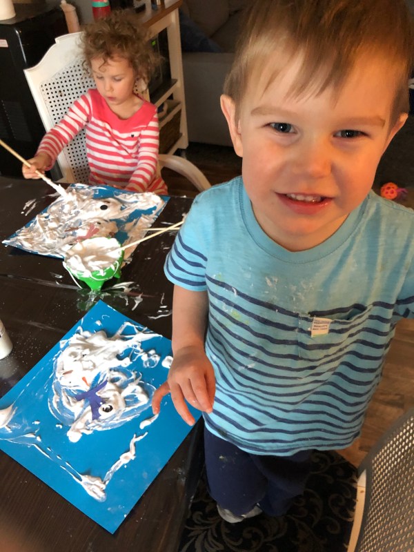 December 11: Puffy Paint Snowmen and Christmas Shopping. One of my regular holiday crafts is puffy paint snowmen because the kids love it so much and all it requires is shaving cream and glue. The 11th is also our wedding anniversary so we went out to dinner with the whole family and then took the kids shopping for gifts for each other. It was so sweet to see how thoughtful they were in picking out gifts that their siblings [including the dog], would love.