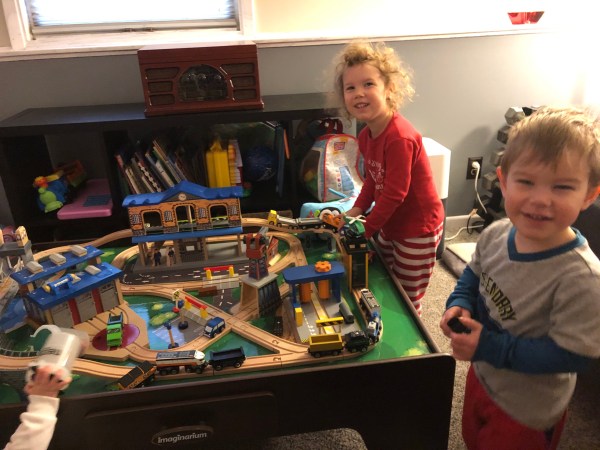 24. Christmas Scavenger Hunt. This is a new activity that I hope to turn into an annual tradition. When we had our first kid, Brett and I began the tradition of opening one gift on Christmas Eve – always one Christmas book and Christmas pajamas. Well, our sustainability values no longer include a) buying new books [because we use the library and already own too many books] or b) buying new pajamas when they aren’t needed. We needed to change the tradition, so this year I created a scavenger hunt for the kids to find one Christmas gift for them all to share. Because it was hidden, it didn’t need to be wrapped. And it was also a toy set that I bought used.