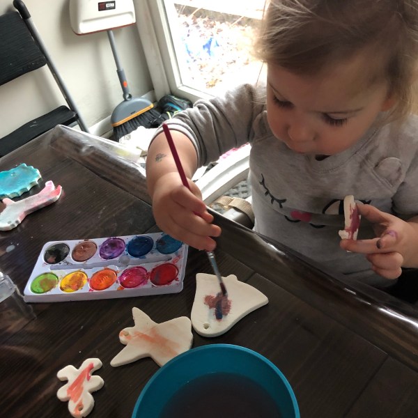 December 7: Clay Ornaments. Every year the kids and I make ornaments of some kind. We’ve done salt dough. Last year we did paper. This year, we rolled and cut and painted and glittered cornstarch clay ornaments. This is a great way to make gifts and to add some new ornaments to the tree.