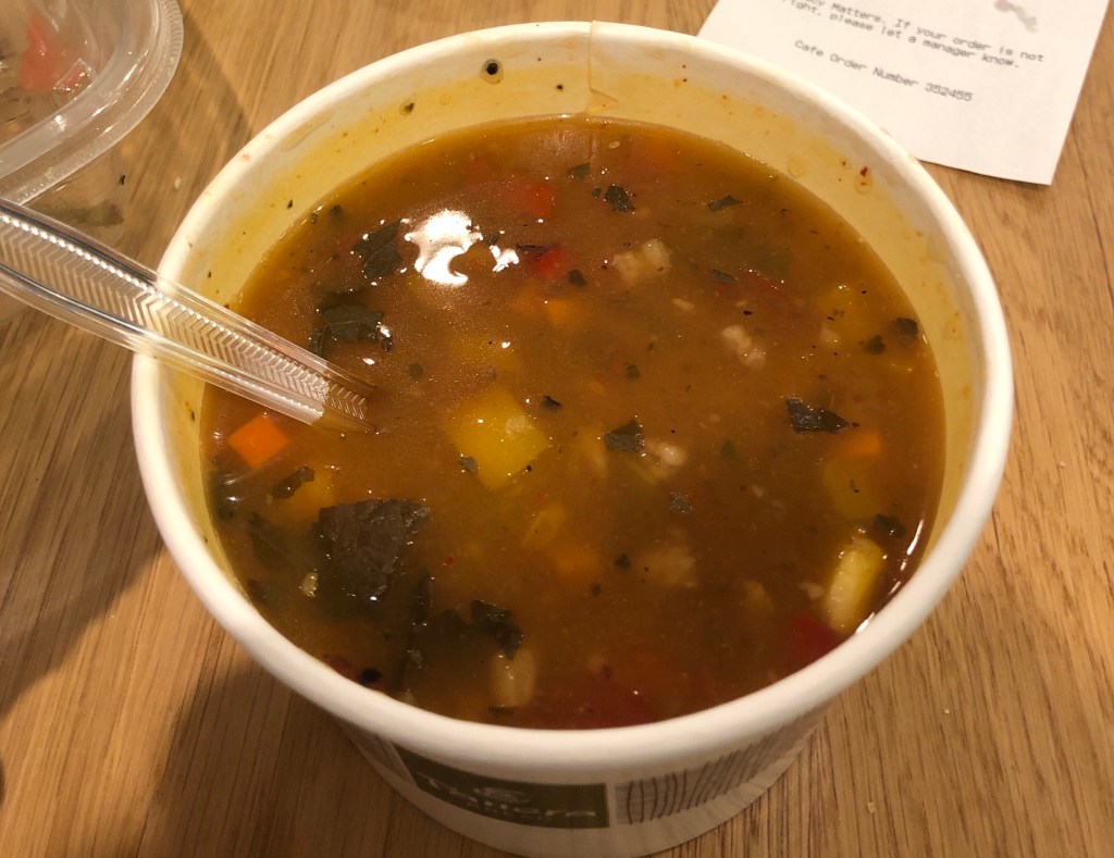 I’m currently in LOVE with Panera’s vegetable soup! [And the Greek salad without the feta cheese.]