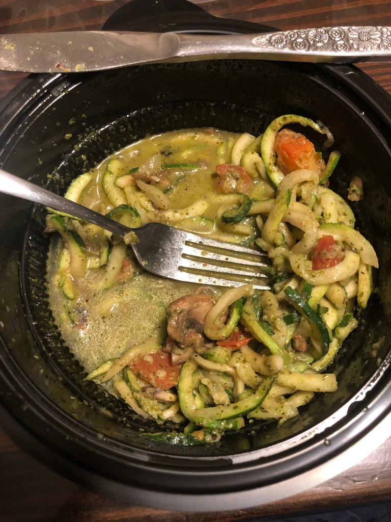 Pesto zoodles from Noodles and Company. Warning: zoodles get juicy
