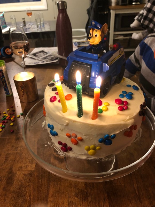 Theo was so excited about those Paw Patrol toys that he didn’t even want to eat cake. Everyone else ate cake while Theo played with the trucks. All the other kids came to the table for cake eventually, but Theo only wanted to play.