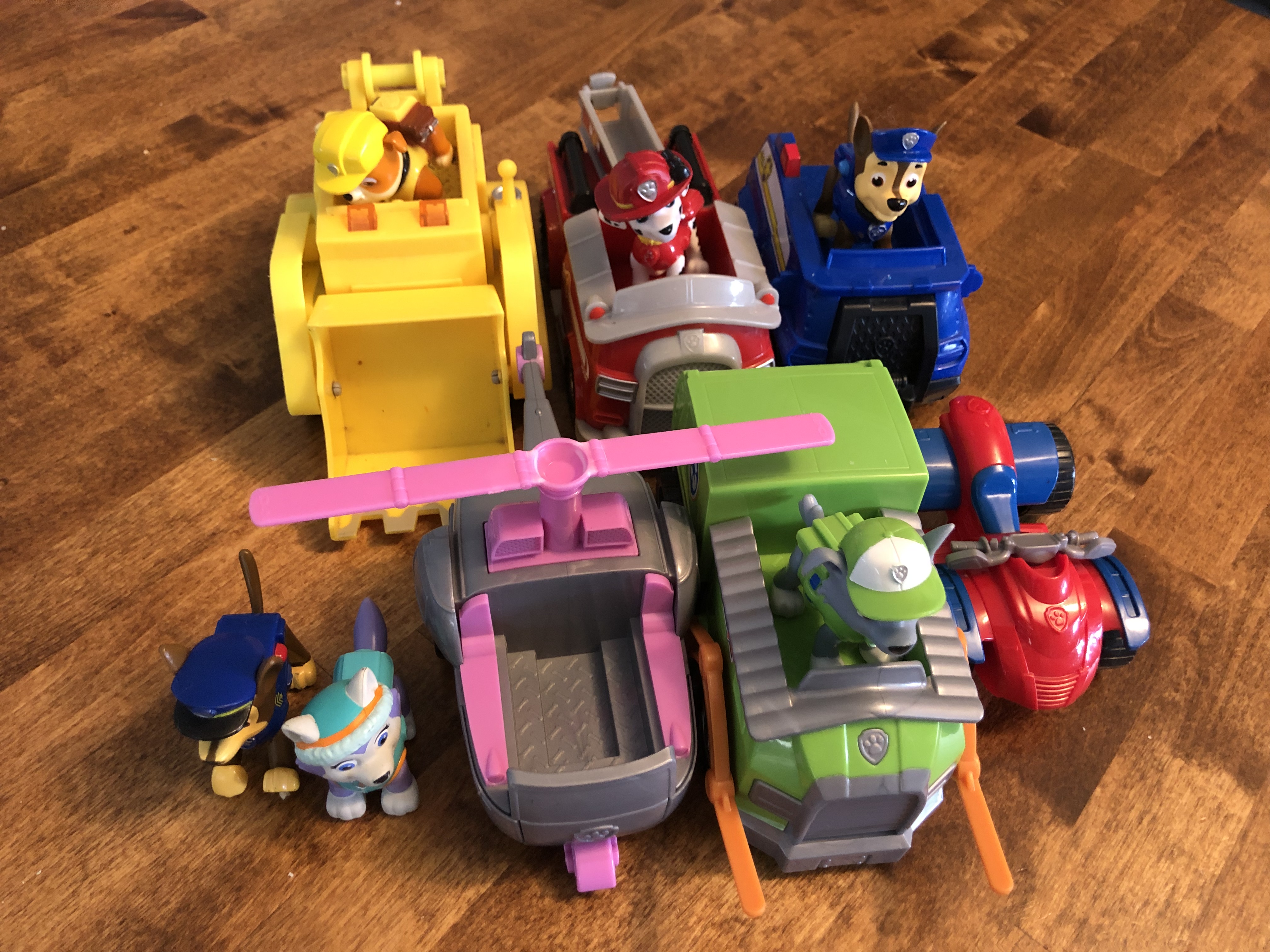 A few weeks ago we began looking for someone selling a used set of these Paw Patrol trucks because we knew how much Theo would love them. Living in the Chicagoland area meant that they were easy to find. We ended up buying a set of six vehicles and eight characters for $15. At Target, these Paw Patrol vehicle/character sets sells for $15 each.