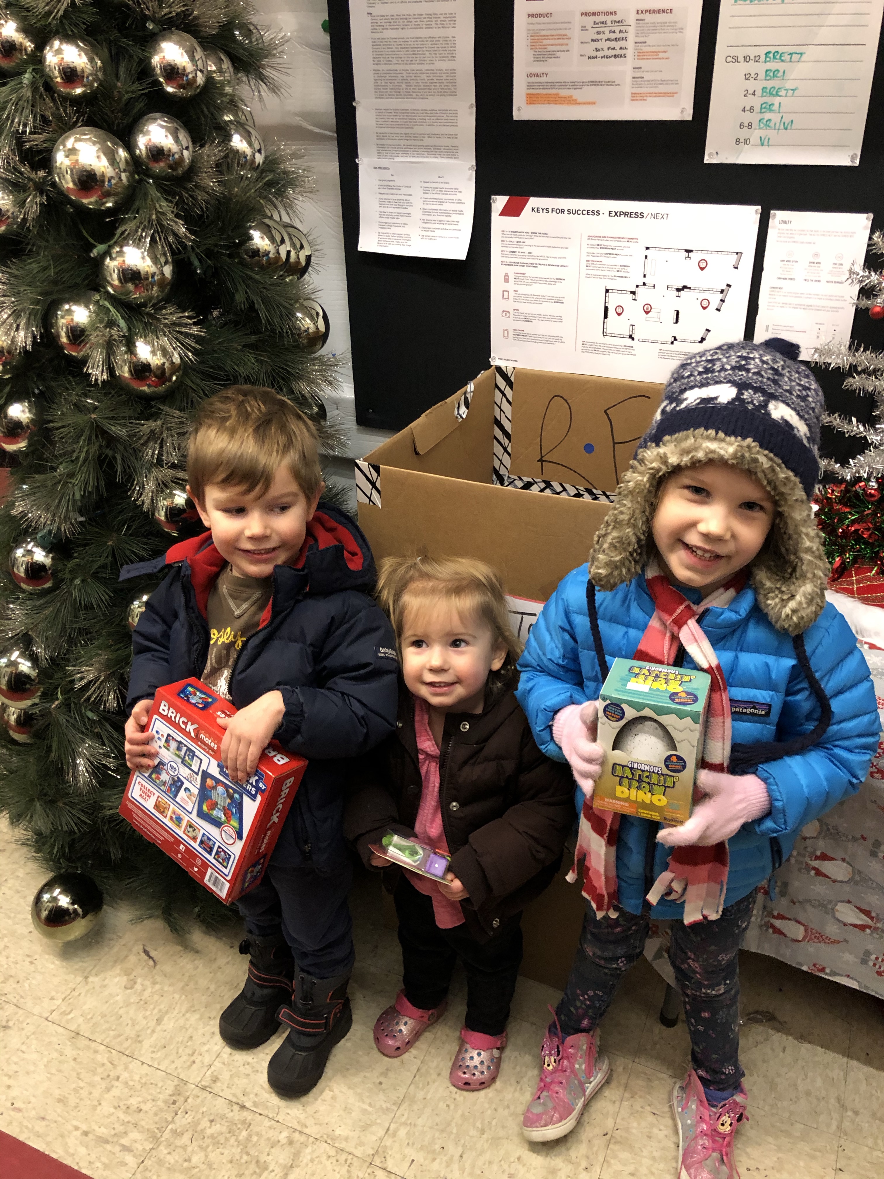 2. We take them shopping to buy gifts for each other. In my family growing up, all five of us kids always gave individual gifts to every other member of the family. I don’t know when or how this came to be, but honestly, it is still happening even though we are all adults. I want my kids to enjoy giving gifts to their siblings so we are starting young [and also paying at this point, of course]. The kids also pick out gifts for Daisy the Dog, of course.