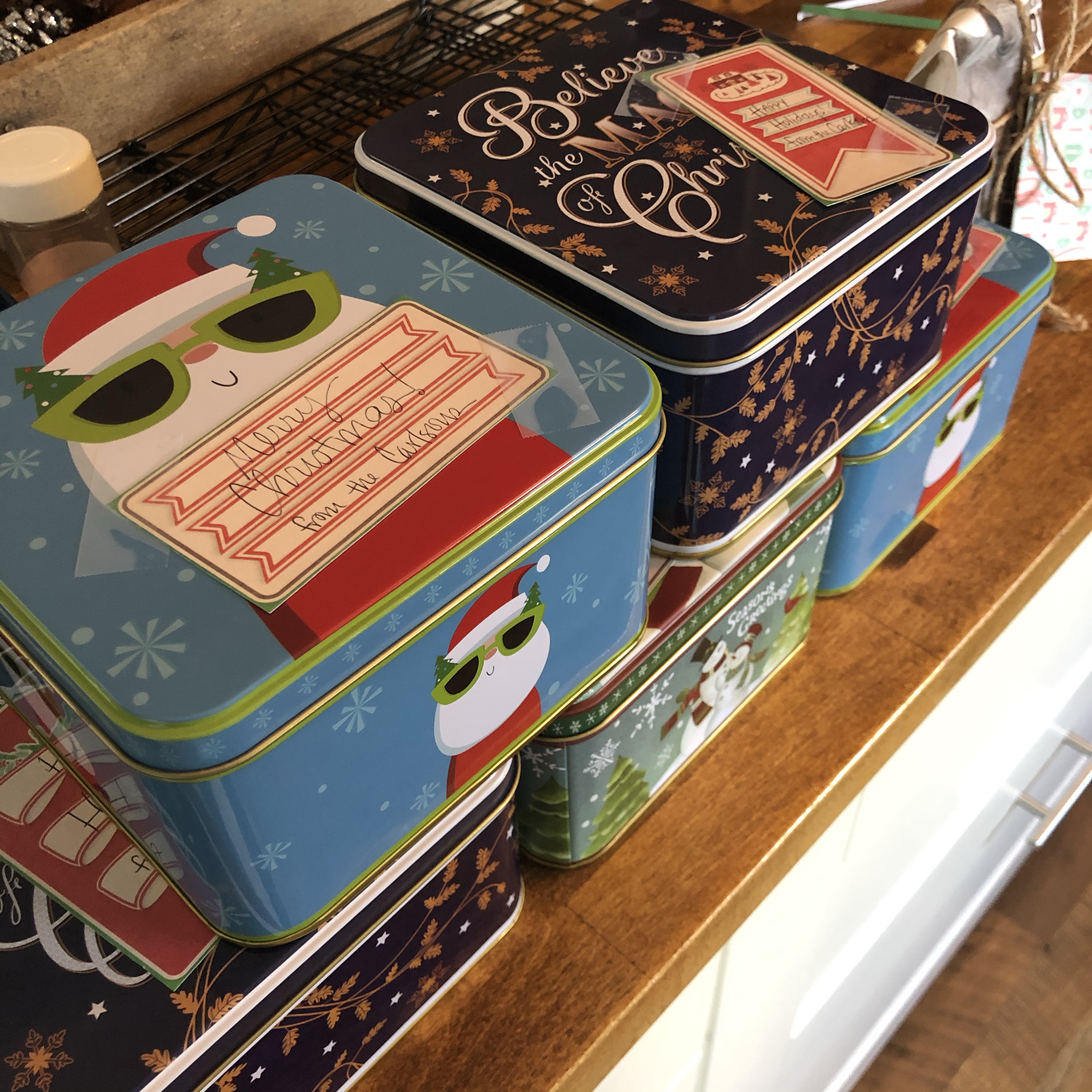 3. We hand deliver gifts to the neighbors. We’ve done this every year since we moved into this house because I resolved to be intentional in building good relationships with my neighbors. The first year, we gave store-bought boxes of chocolates. [We had just moved in so I didn’t know if people would accept hand-made goodies.] Last year the kids and I made chocolate covered pretzel rods with holiday molds. This year, we delivered a tin of freshly baked Christmas cookies to each neighbor. [I think they know us well enough now to eat them.] We also give a gift to our postwoman.
