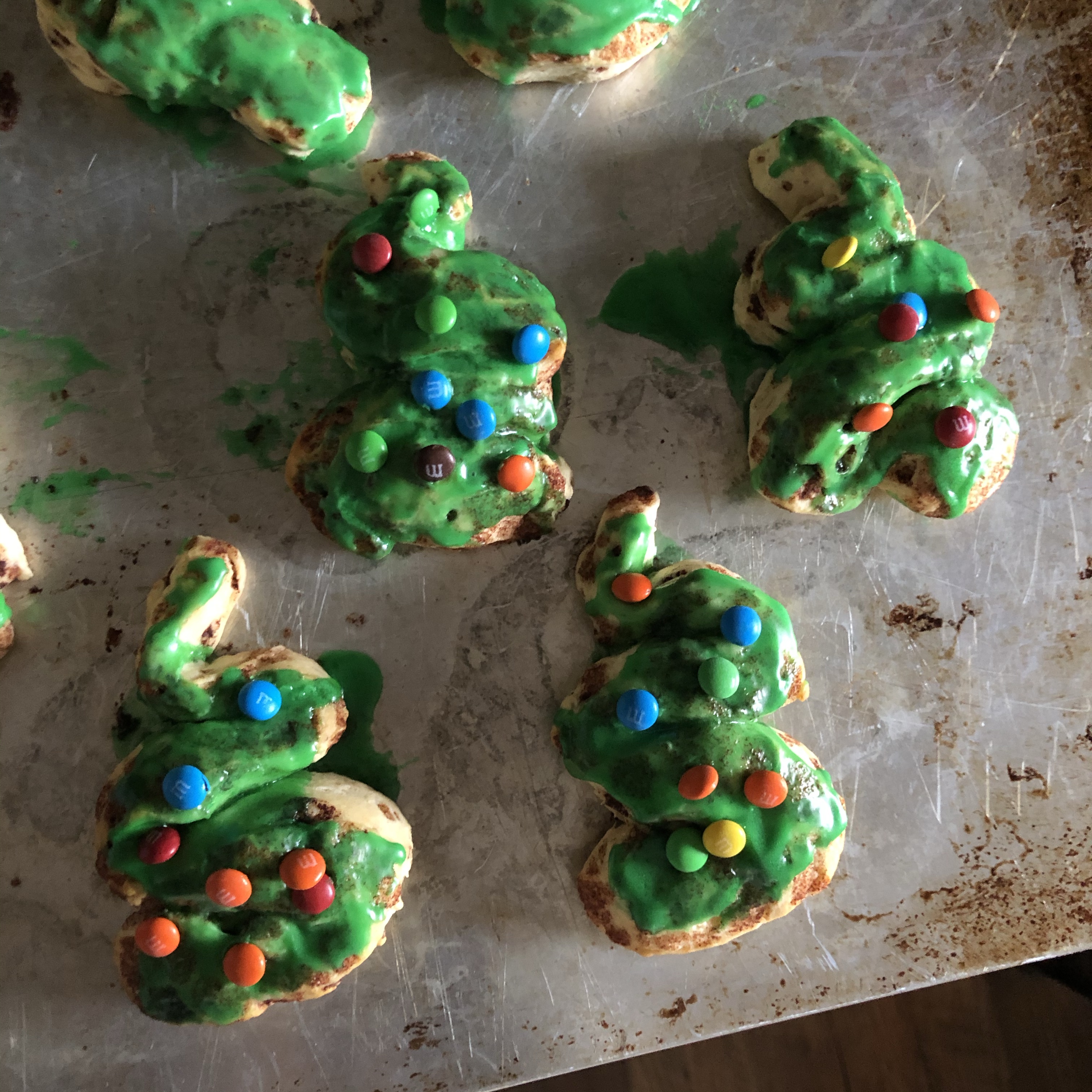 December 15: Christmas Tree Cinnamon Rolls. I saw this on Pinterest and thought they were cute. They are harder to make into a tree shape than you would think…only half of them came close to resembling trees. Still delicious though!