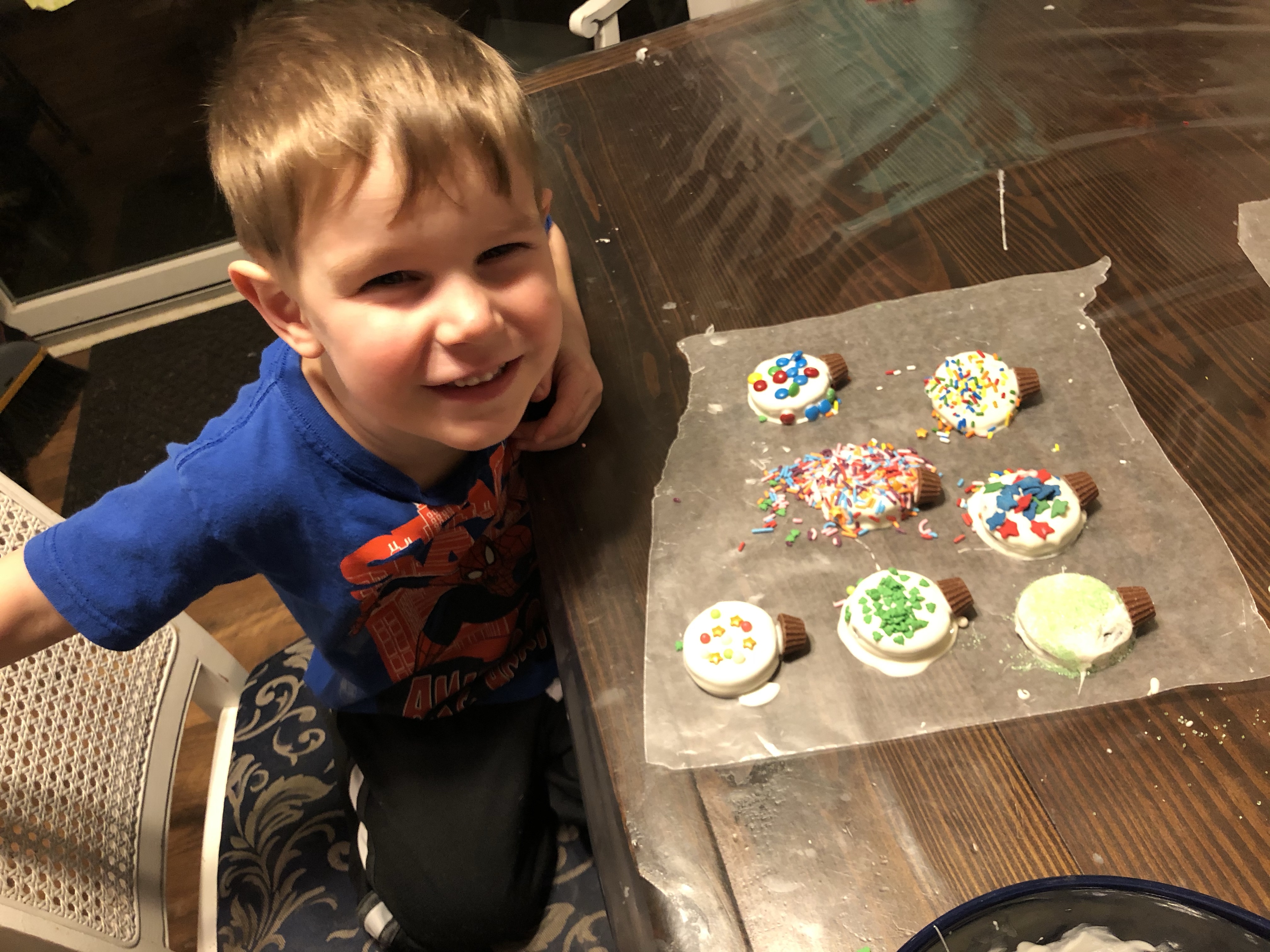 Homemade, meaningful, or consumable gifts for others. We made chocolate pretzels for our neighbors. We gave chocolates and amazon gift cards to Evangeline’s preschool teachers. We made ornaments for our aunts/cousins.