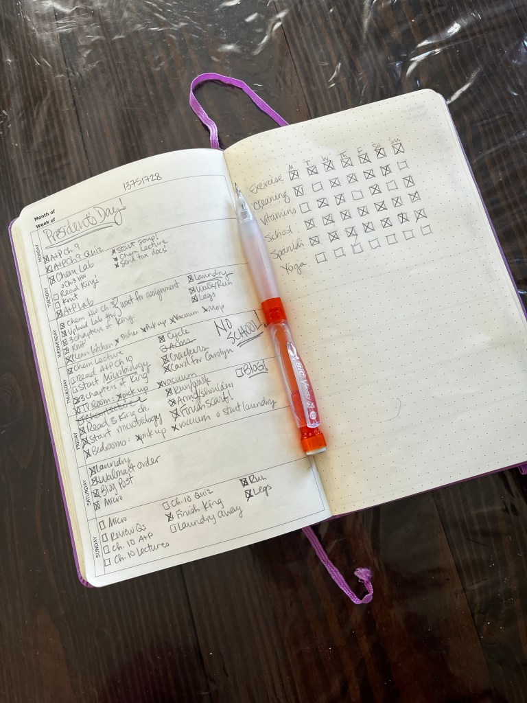 On the right page, I put a list of “daily tasks” – things that I want to accomplish every day. As you can see, I’m pretty terrible at getting yoga in. Last year at this time I was doing 20-30 minutes of yoga every night before bed…and it was AMAZING! Besides the benefit to all my tight muscles, doing yoga in the evening prevented me from snacking on junk food or just sitting in front of the television. I miss it. But I am also [obviously] not working up the willpower to get it done in the evenings.