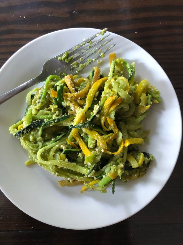 Zoodles [and Squoodles?] with Pesto