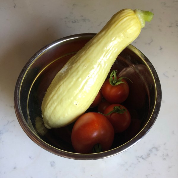 I pulled tomatoes, cucumber, and green beans for lunch today.