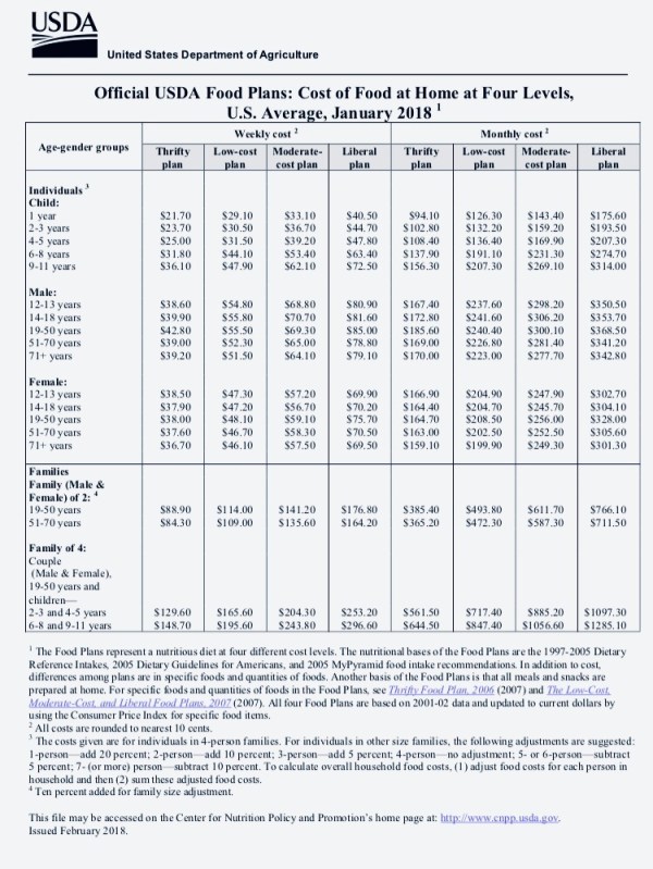 They vary based on the number and ages of you family members and based on whether you are living lean [“Thrifty plan”] or high on the hog [“Liberal plan”].