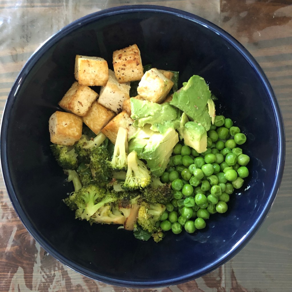 This cookbook has an excellent recipe for a cashew-based cream dressing, which I love. It was delicious. And the salad was hearty enough with the broccoli, tofu, and avocado to feel like a really well-rounded [and super healthy] dinner. [I subbed peas for edamame, because I couldn’t find it anywhere in my small town.]