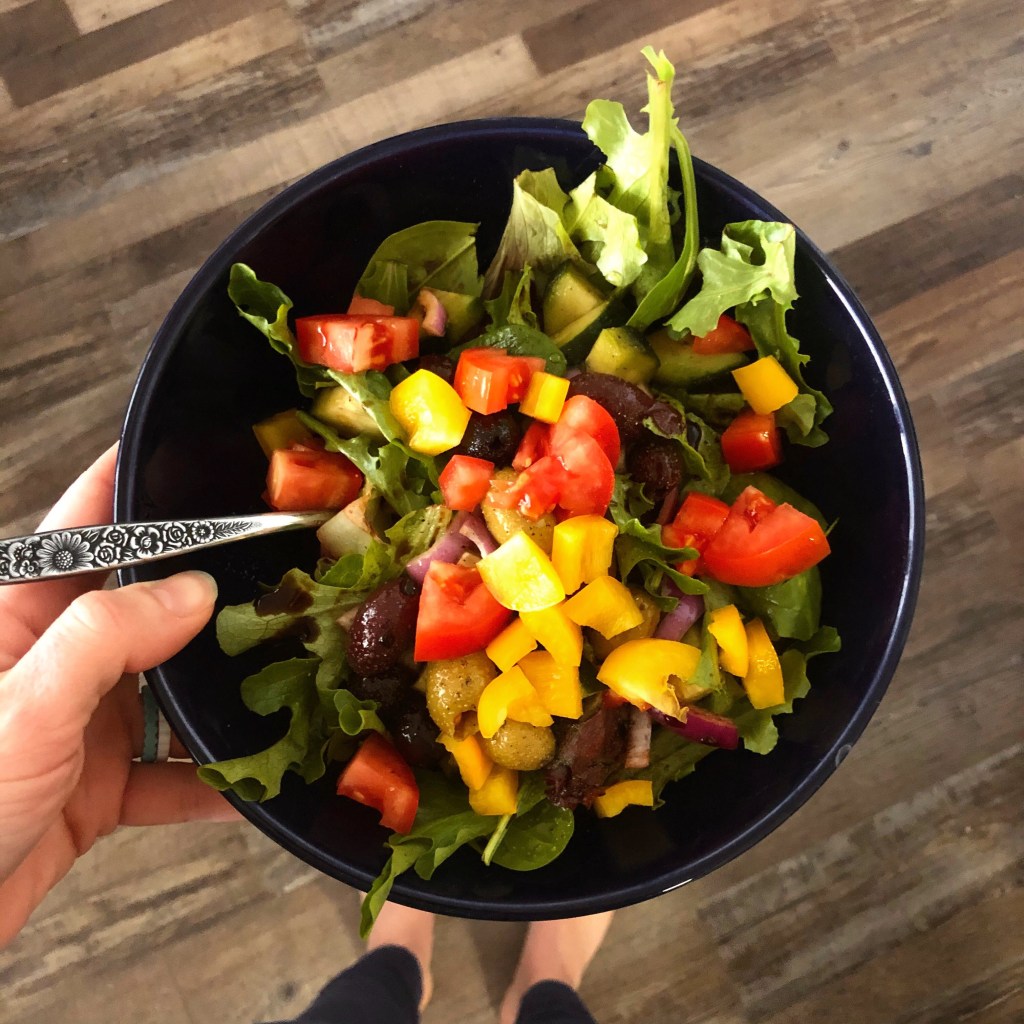 I personally, consume A LOT of olive oil and use it in many, many dishes. So sometimes I skip it in my salad. No biggie.